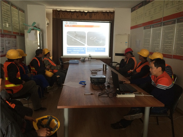 為此,濟南市市政工程有限公司緯十二路項目部進(jìn)行周密策劃,精心準(zhǔn)備,首先協(xié)助建設(shè)單位召開封閉施工新聞發(fā)布會,然后向沿線單位及小區(qū)居民發(fā)放公示信;針對路口檢查井蓋較多的情況,項目部提前通過PPT課件和視頻教學(xué)的方式組織民工進(jìn)行防沉降井蓋提升的施工及安全技術(shù)交底工作,確保瀝青面層攤鋪順利進(jìn)行。