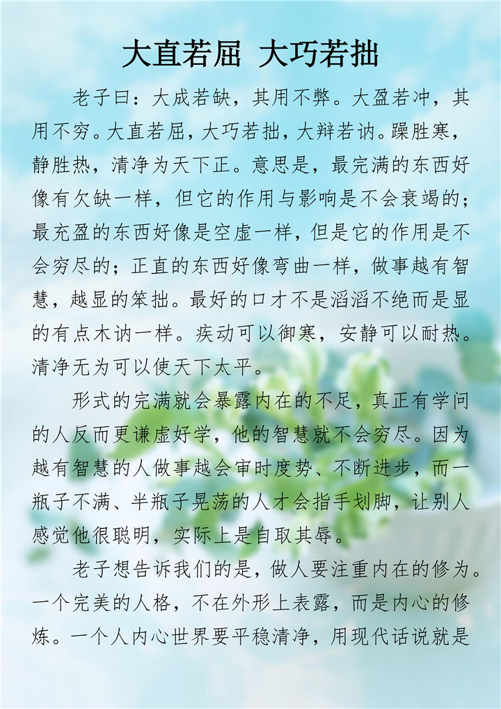 大直若屈 大巧若拙