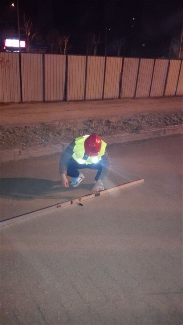 3月21日,緯十二路道路工程經(jīng)五路人行天橋進行梯道安裝,慢車道進行水穩(wěn)攤鋪施工。